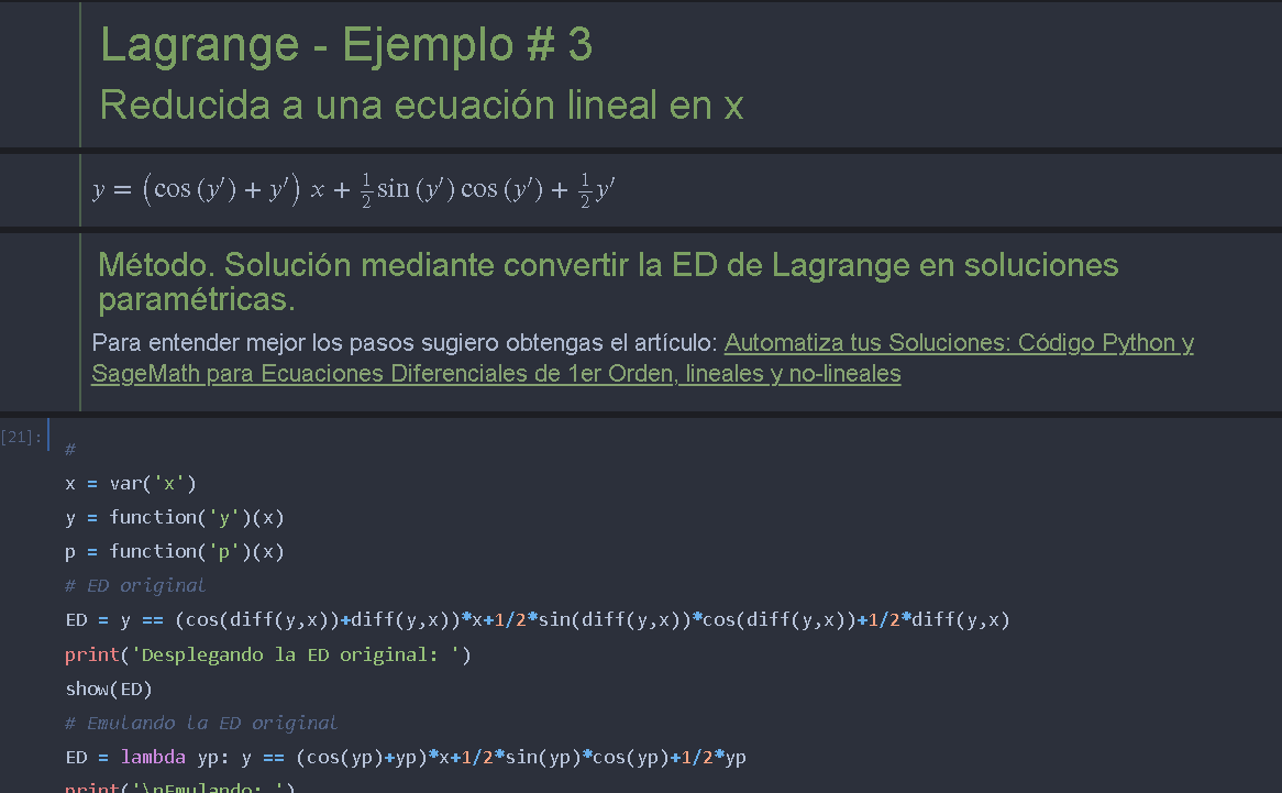 - Ofrece soluciones directas utilizando SageMath para abordar EDs de Lagrange de manera eficaz.