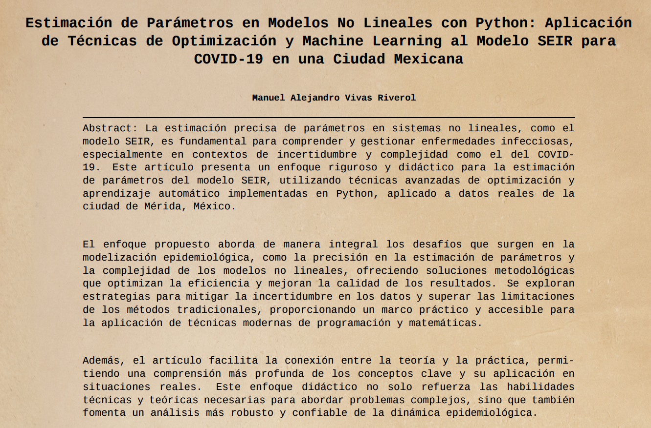Mientras que en el notebook de códigos se presentan solo los scripts, aunque con ejemplos adicionales. Con ambos recursos, tendrás todas las herramientas necesarias para resolver problemas de estimación de parámetros en modelos no lineales y modelar sistemas complejos con datos reales.