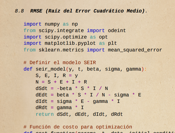 - Código en Python para automatizar la estimación de parámetros y modelar diferentes escenarios.